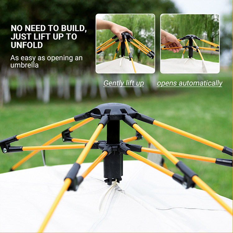 Садржи иновативну технологију аутоматског отварања која омогућава шатору да дође у пуни облик у року од неколико секунди, елиминишући компликоване процедуре монтаже и уштедећи драгоцено време за камповање.