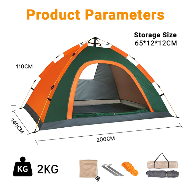 210Д Оксфорд двослојни аутоматски шатор отпоран на кишу водоотпоран. Ваше врхунско склониште за све временске прилике за авантуре на отвореном. Овај 210Д Оксфорд двослојни шатор има аутоматско подешавање и врхунску заштиту од кише. Са лаганим стубовима од фибергласа и дизајном за лако ношење, савршен је за камповање и изласке на роштиљ.