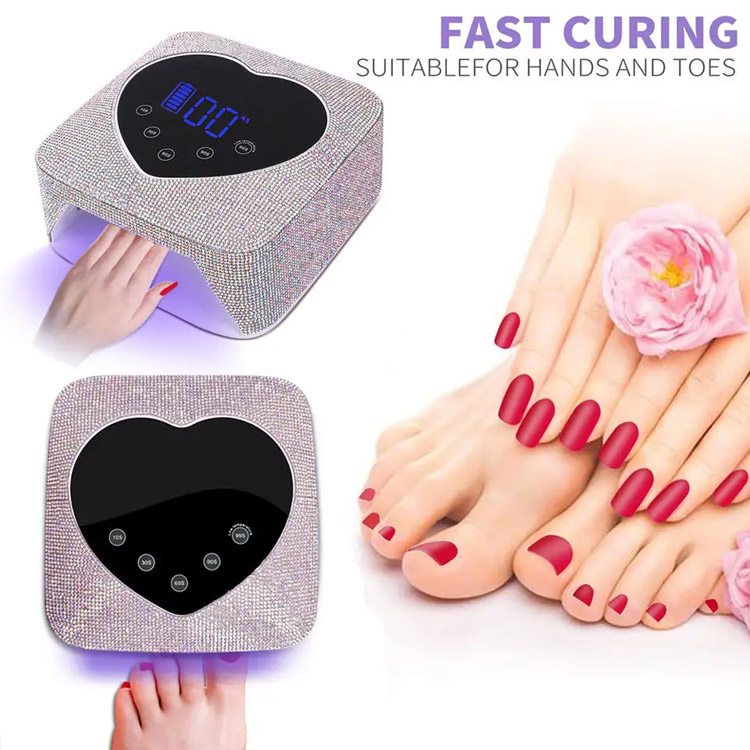 Ова лампа за нокте у облику срца украшена је пјенушаним вистом, што га чини гламурозним додатком ваше рутине за негу ноктију. Његов привлачан дизајн додаје додир луксуза у било који простор.