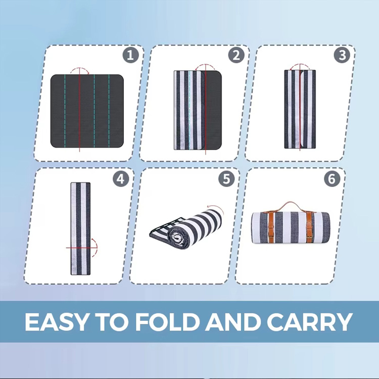Склопива пругаста издржљива водоотпорна простирка за пикник. Ваш врхунски пратилац на отвореном за пикнике и авантуре. Ова фабрички директна простирка за пикник има компактан склопиви дизајн са практичном ручком за ношење. Израђен од пругасте издржљиве водоотпорне тканине, нуди прилагођене опције штампања за велепродајне клијенте.