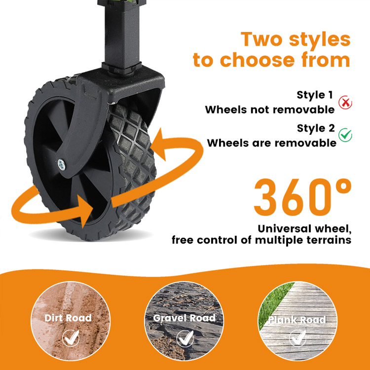 Опремљен са 8-инчним пнеуматским гумама са дубоким шарама газећег слоја који се глатко крећу по песку, шљунку, трави и неравним стазама, истовремено обезбеђујући стабилно кретање и лаку управљивост.