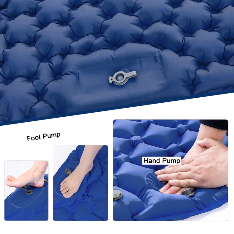 Направљен од издржљиве Оксфорд тканине од 210Т са ТПУ премазом, овај душек је отпоран на воду, бушење, абразију и УВ оштећења — савршен за неравне терене попут шљунка, песка или шумских подова. Ојачани шавови и ваздушни вентил отпоран на цурење обезбеђују дугорочну поузданост. Еколошки прихватљиви материјали без мириса испуњавају међународне безбедносне стандарде, што га чини безбедним за децу и осетљиве кориснике.