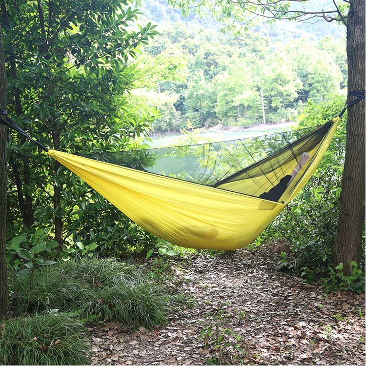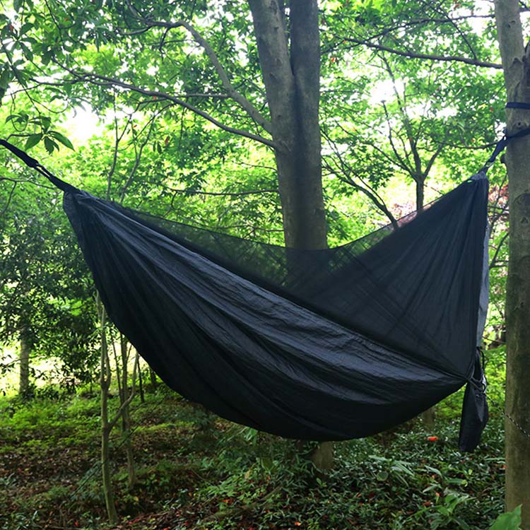 Мрежа са фином мрежом у потпуности обавија висећу мрежу са системом за улаз са рајсфершлусом, стварајући непробојну баријеру против комараца и других инсеката који гризу док одржава одличан проток ваздуха.