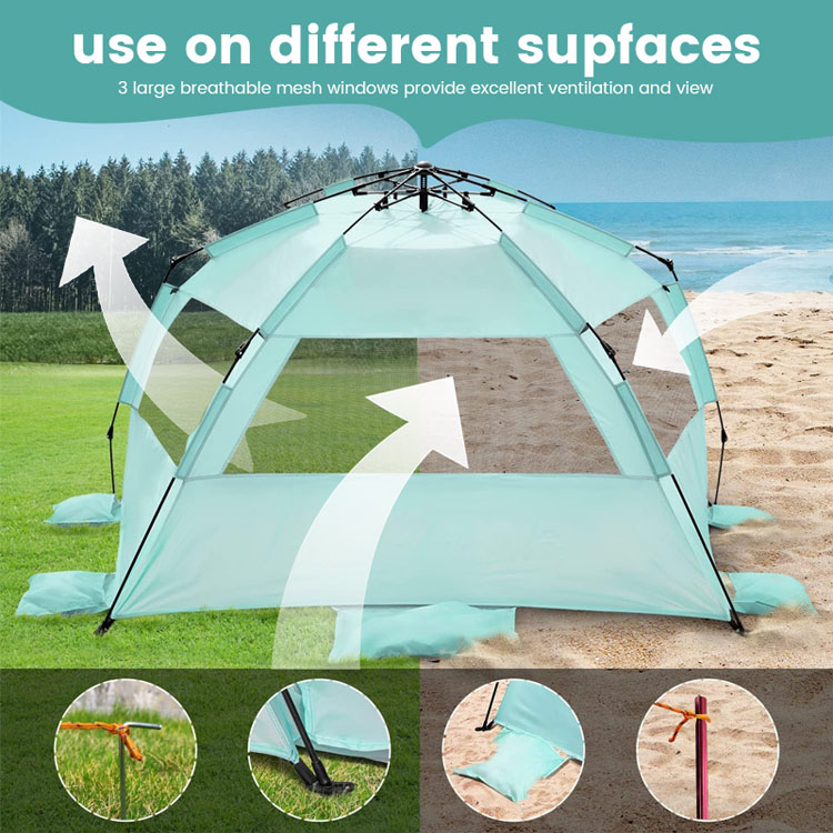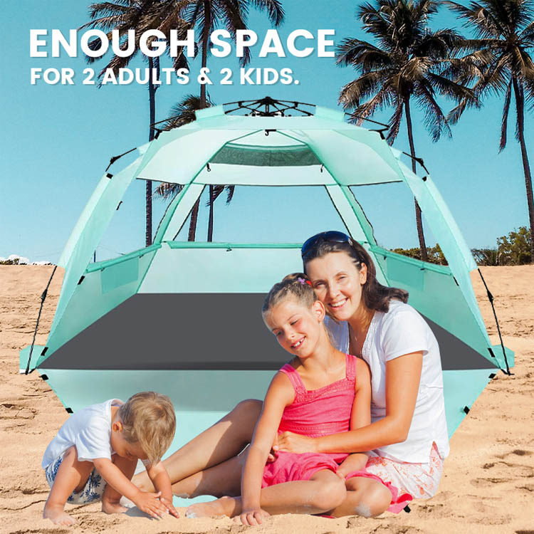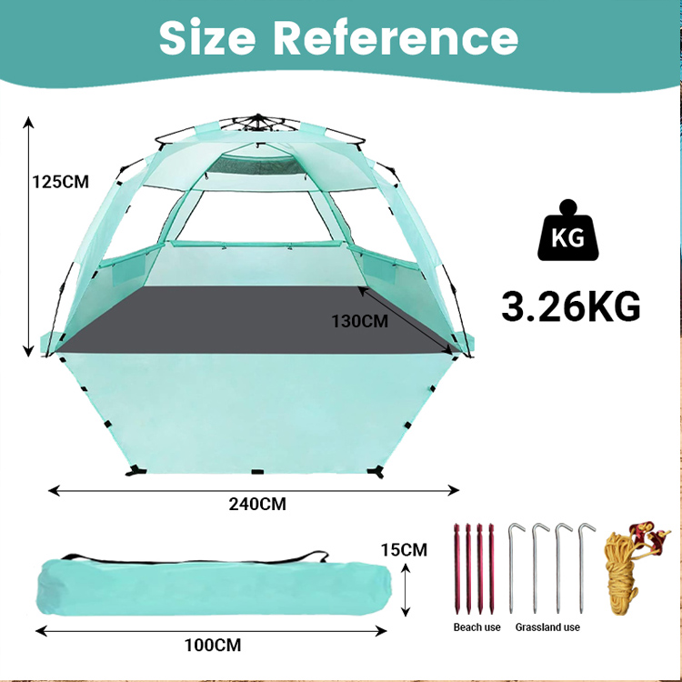 Велепродаја ултралаких полиестерских шатора за сунчање за плажу. Ваше врхунско велепродајно решење за заштиту од сунца на плажи. Овај ултралагани шатор за заштиту од сунца од полиестера има згодан склопиви искачући дизајн. Савршен за масовну употребу на плажи на отвореном, комбинује лако постављање са поузданом покривеношћу сенке.